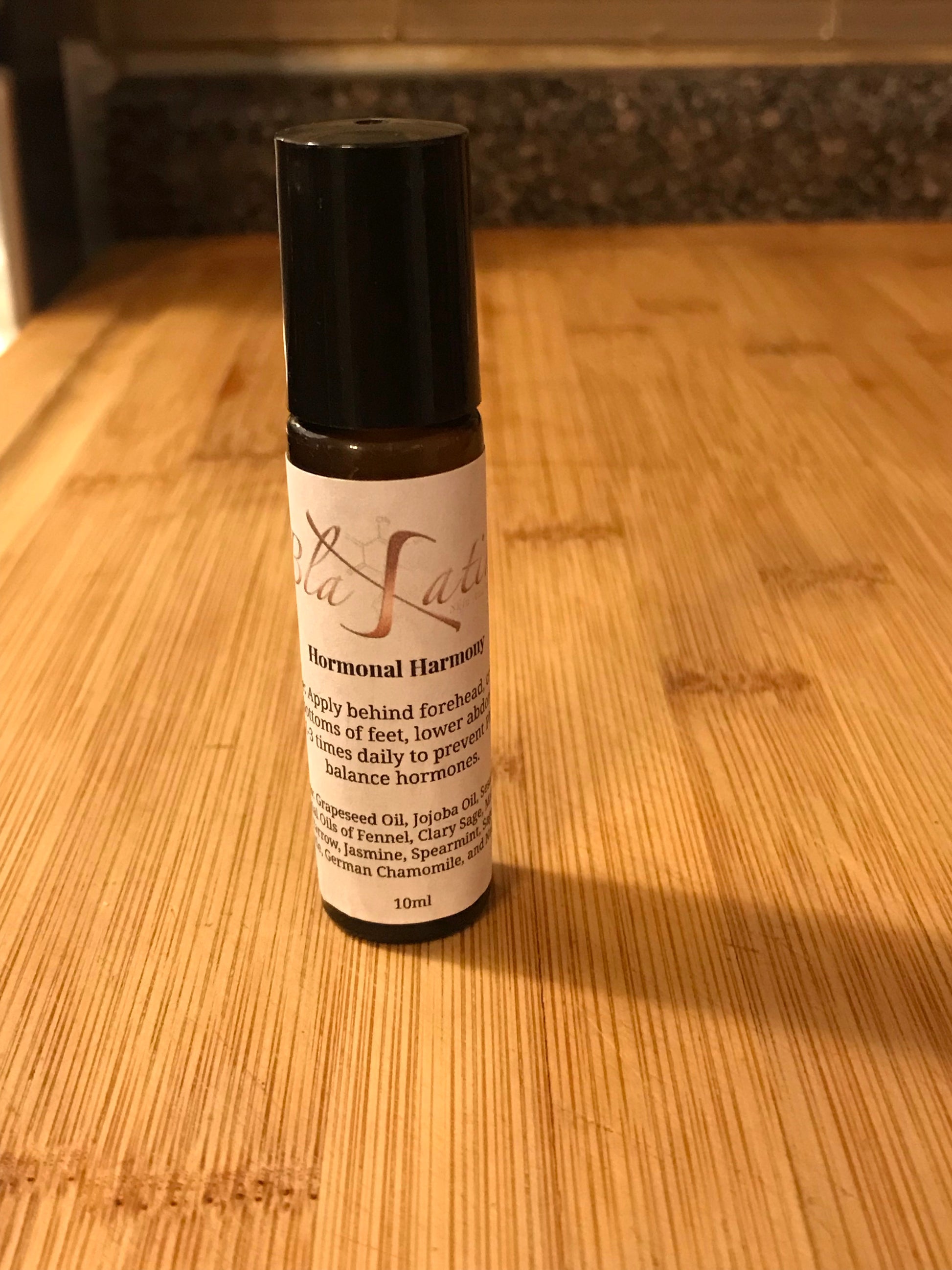 Apply behind forehead, crown of head, bottoms of feet, lower abdomen and lower left back 1-3 times daily to prevent PMS and balance hormones.